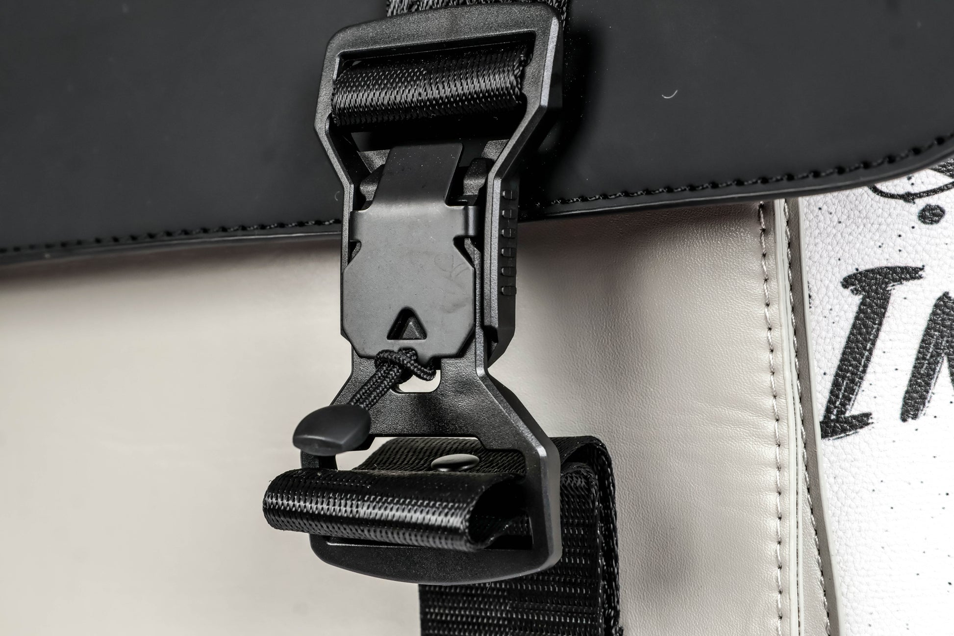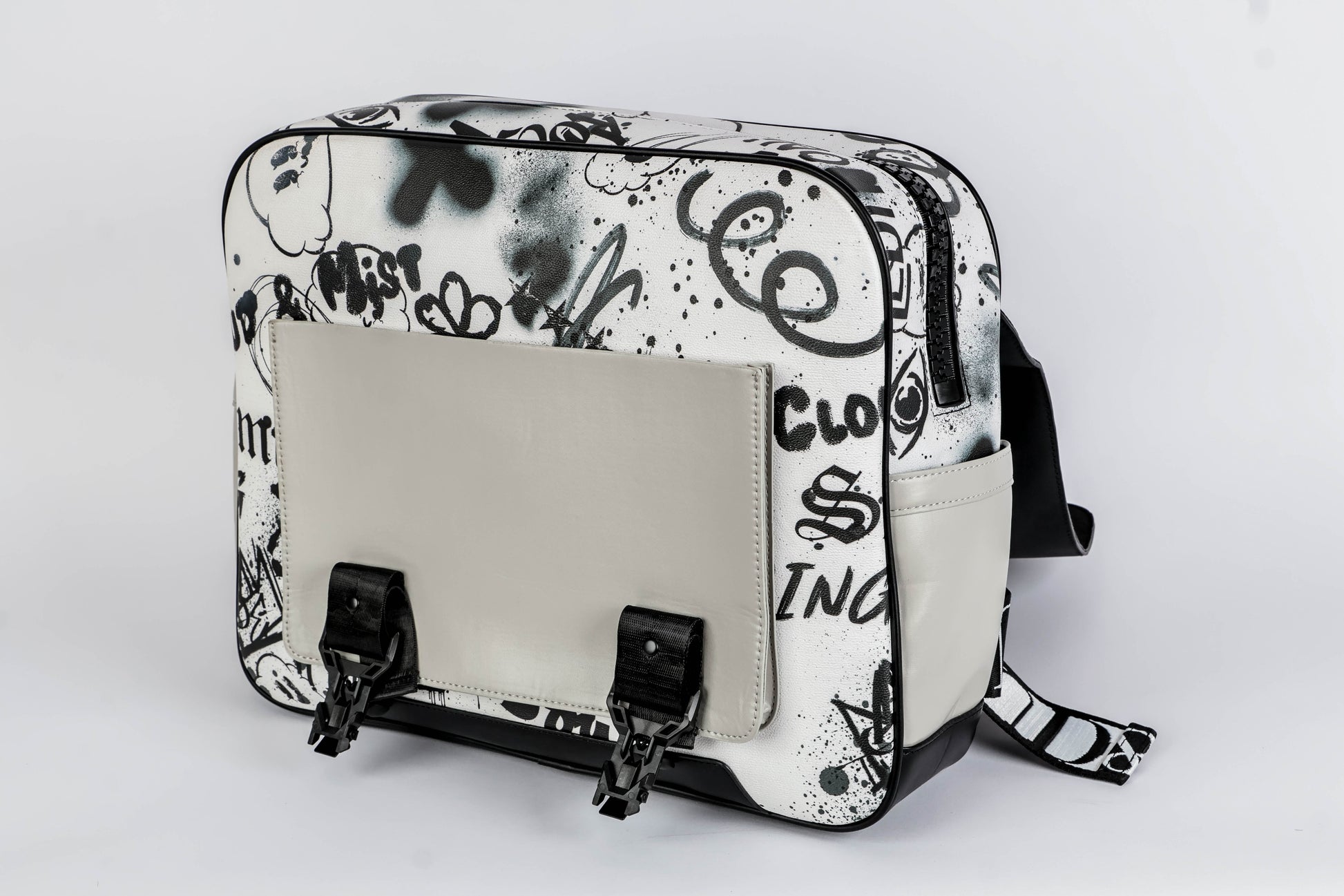 • Statement Design: Sleek grey and monochrome vegan PU leather body accented with bold, contemporary panels for an eye-catching, street-luxe look.
