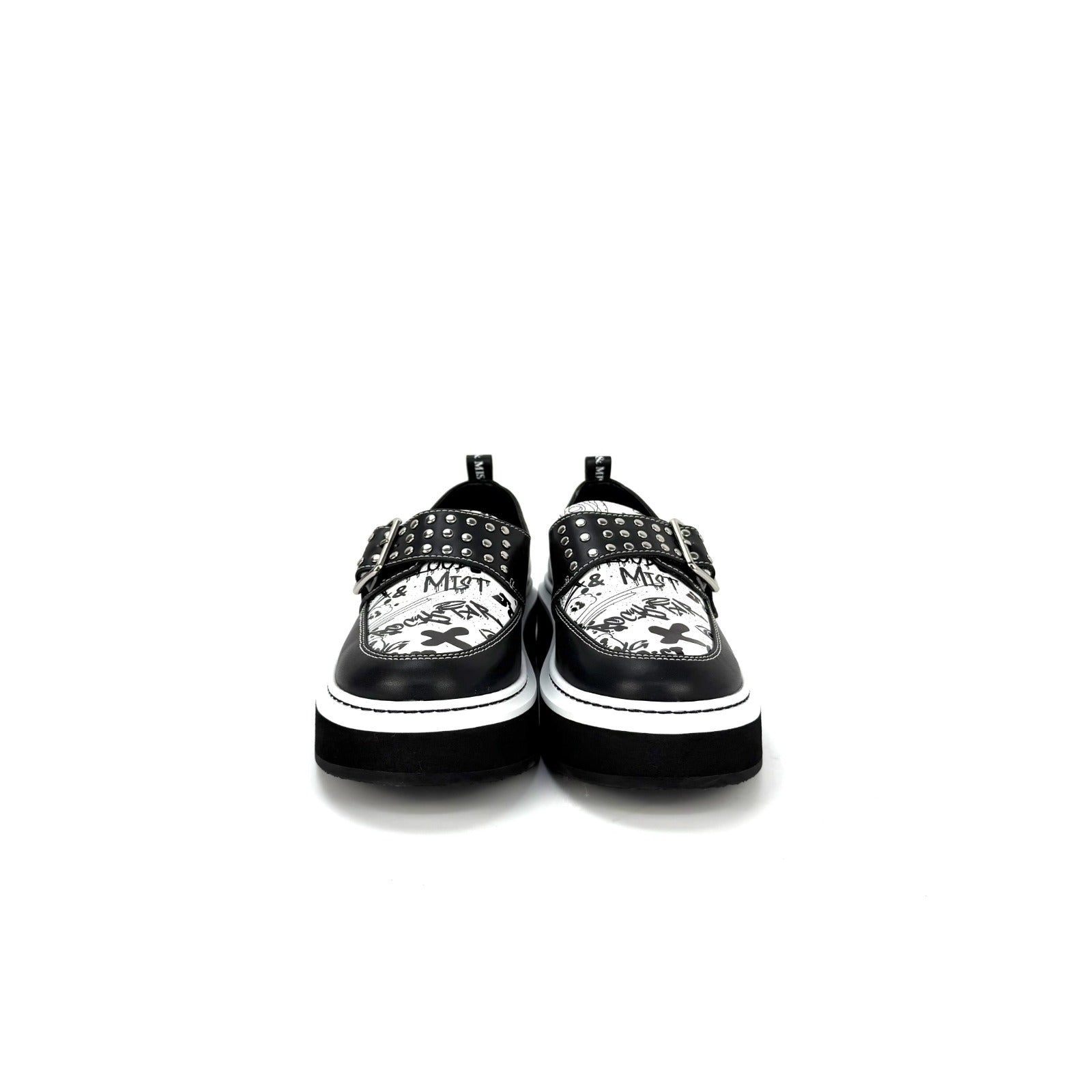 Striking Design: Smooth black microfiber leather upper accented with our exclusive Cloud & Mist graffiti-print vamp — a hand-drawn collage of words, symbols, and playful characters.