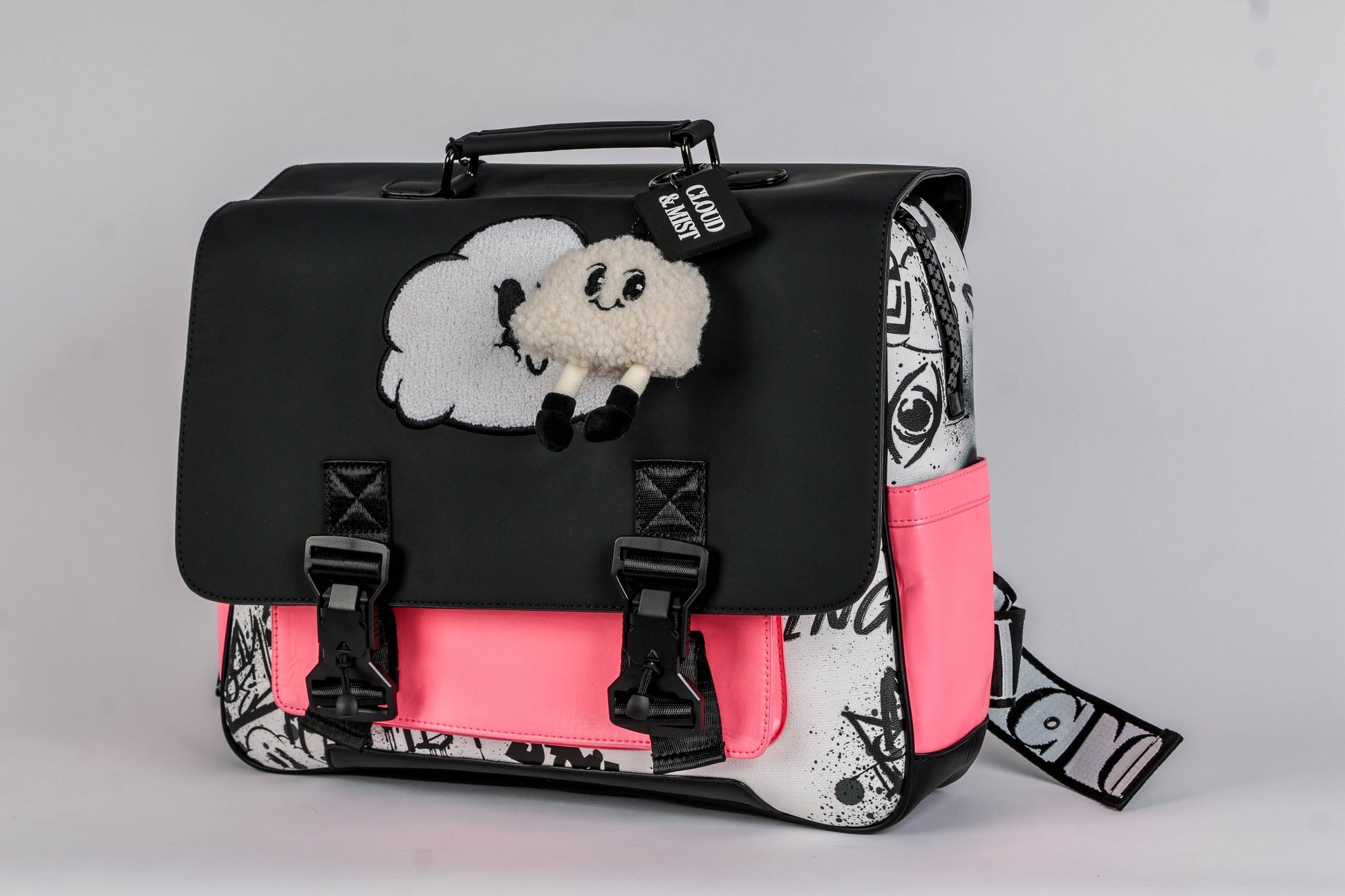 Signature Detail: Embroidered Cloud mascot on the front flap brings a touch of whimsical charm to its structured silhouette.